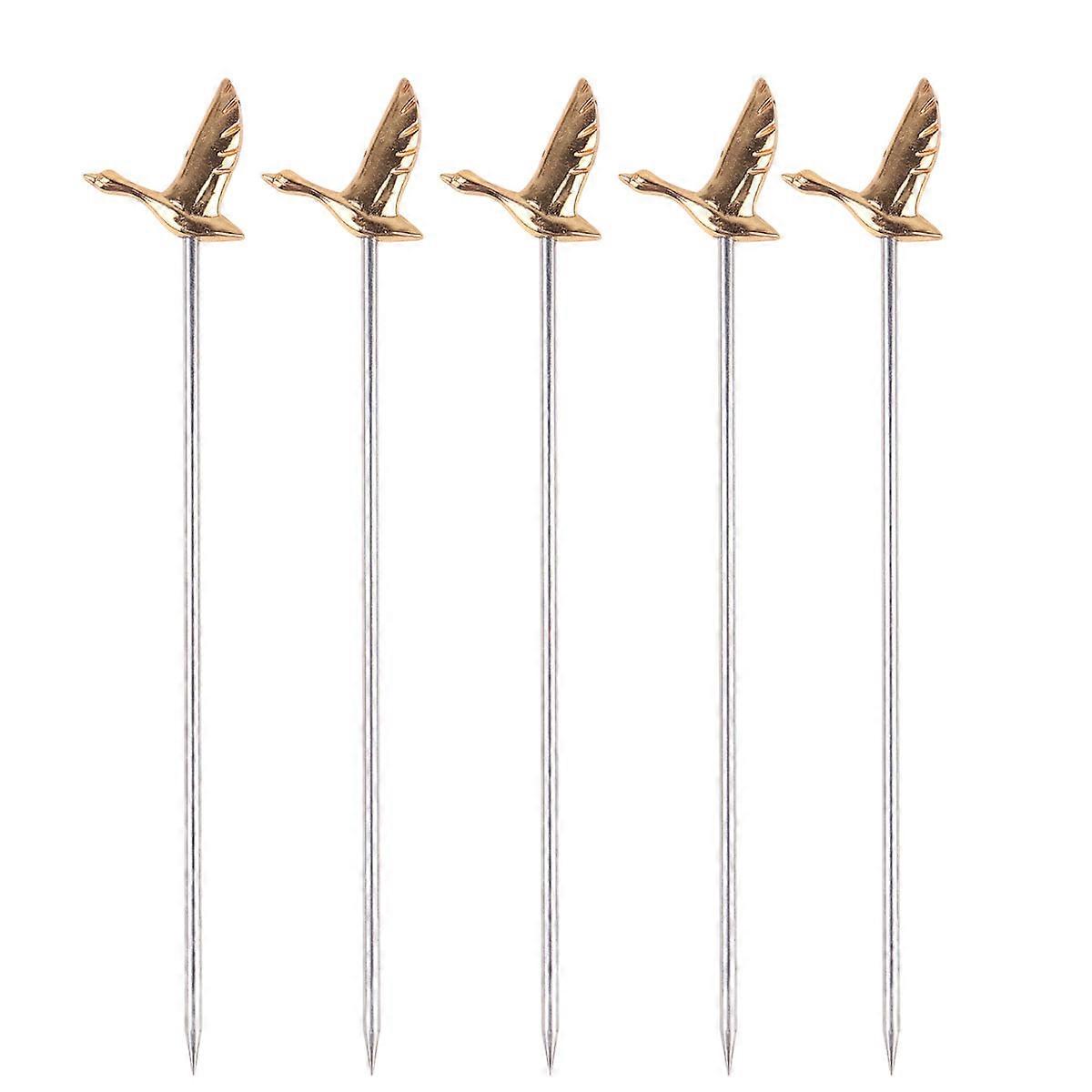 5pcs Stainless Steel Cocktail Spears Greylag Shape Fruit Forks Salad Picks Dessert Fork (Golden)
