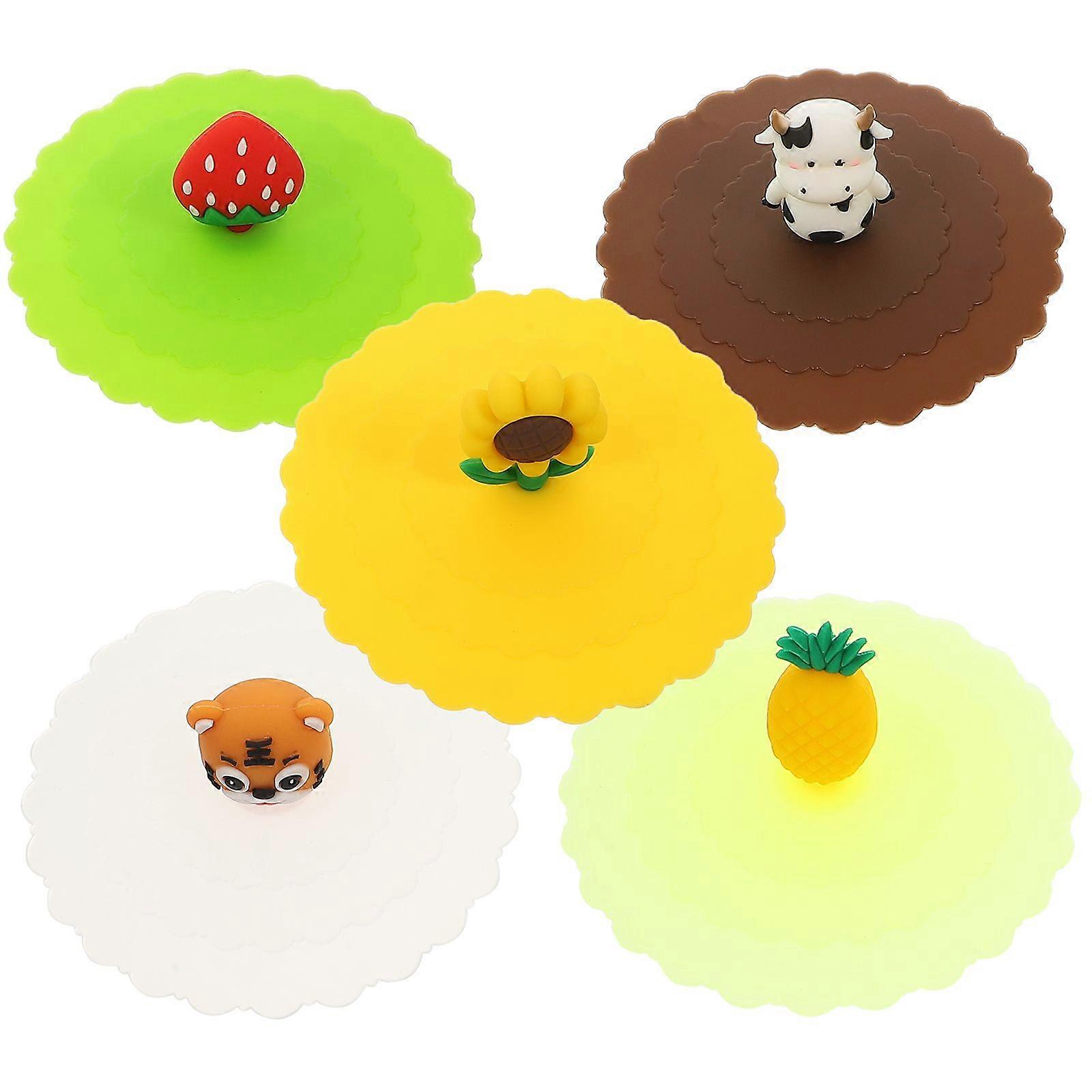 5Pcs Cartoon Silicone Cup Lids Adorable Cup Covers Silicone Drink Covers Silicone Mug Covers