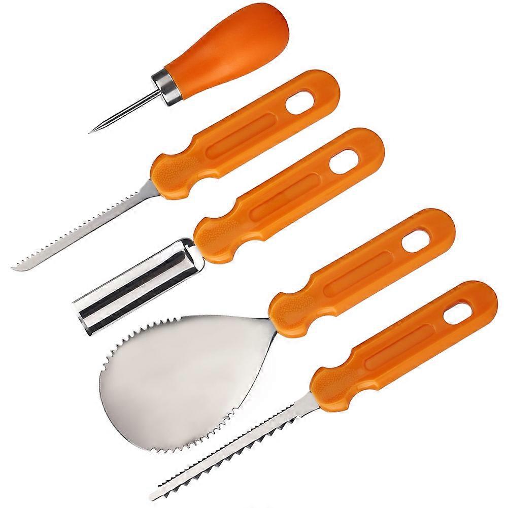 5PCS Halloween Pumpkin Carving Tools PP Stainless Steel Pumpkin Cutting Supplies Tools Kit for Art Crafts Adults and Kids