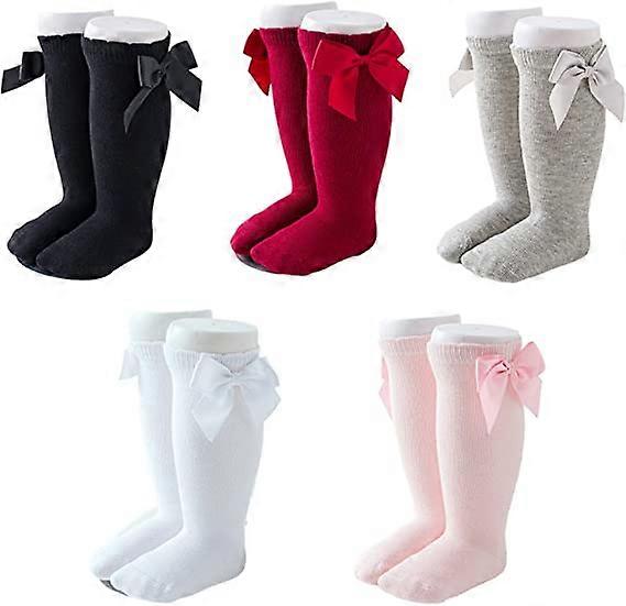 5Pc/Set Baby Knee High Sock Bow Ruffled Stockings Uniform Infants Toddler Sock Tights Baby