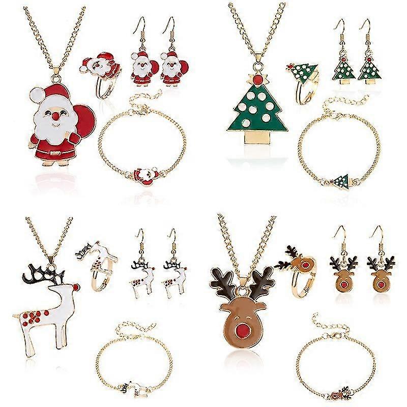 5pcs/set Christmas Women Alloy Jewelry Set Santa Elk Bell Earrings Necklace Bracelet Decor Xmas Accessories Gift For Girl Women-MXBC