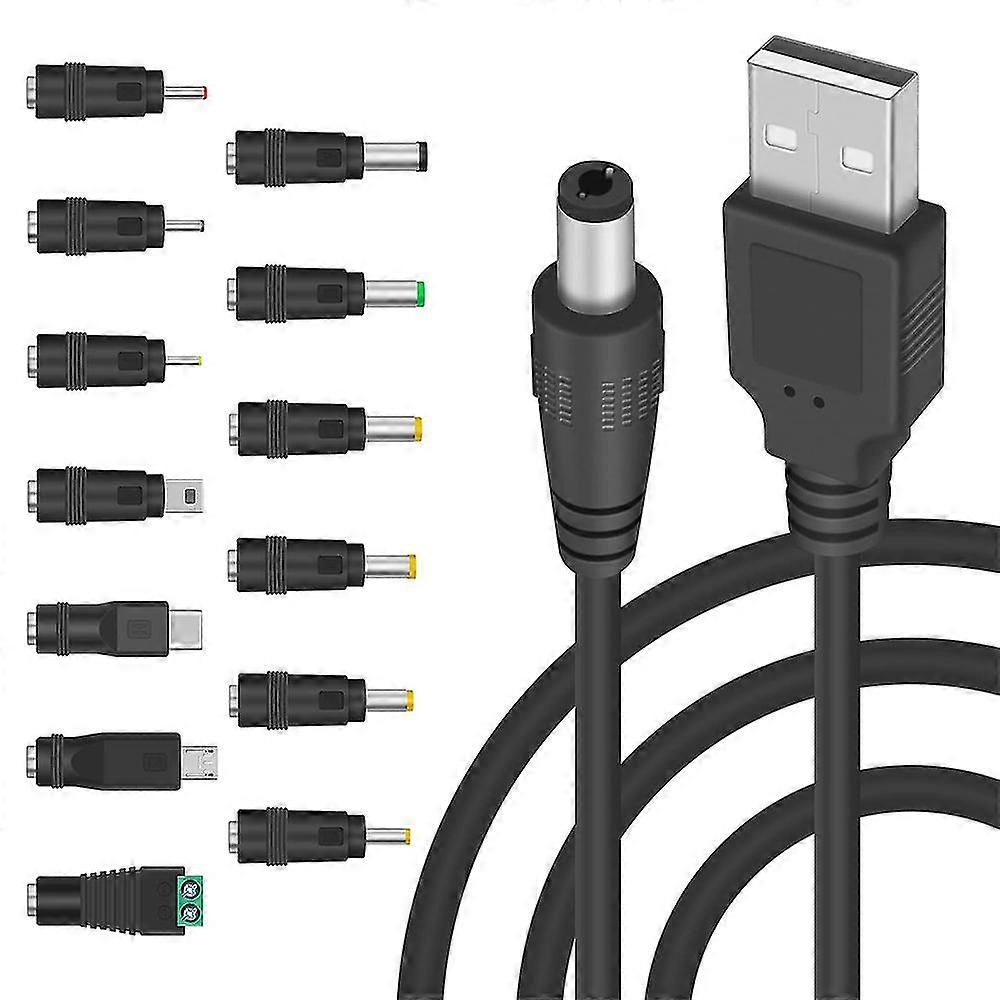 5v Dc 5.5 2.1mm Jack Charging Cable Power Cord, Usb To Dc Power Cable With 13 Interchangeable Plugs