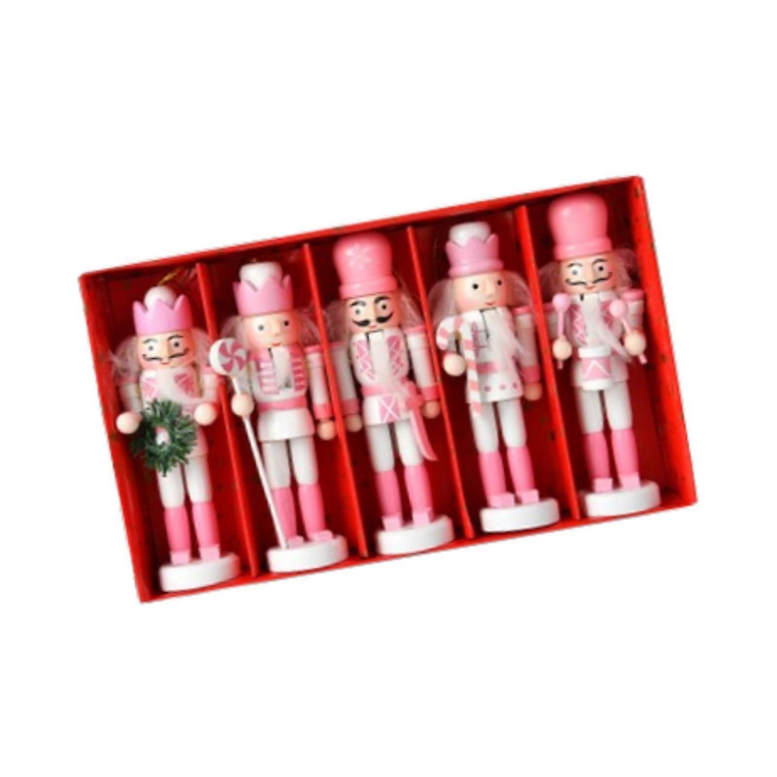 5x Wooden Nutcracker Figures Home Party Christmas Hanging Decorations Pink
