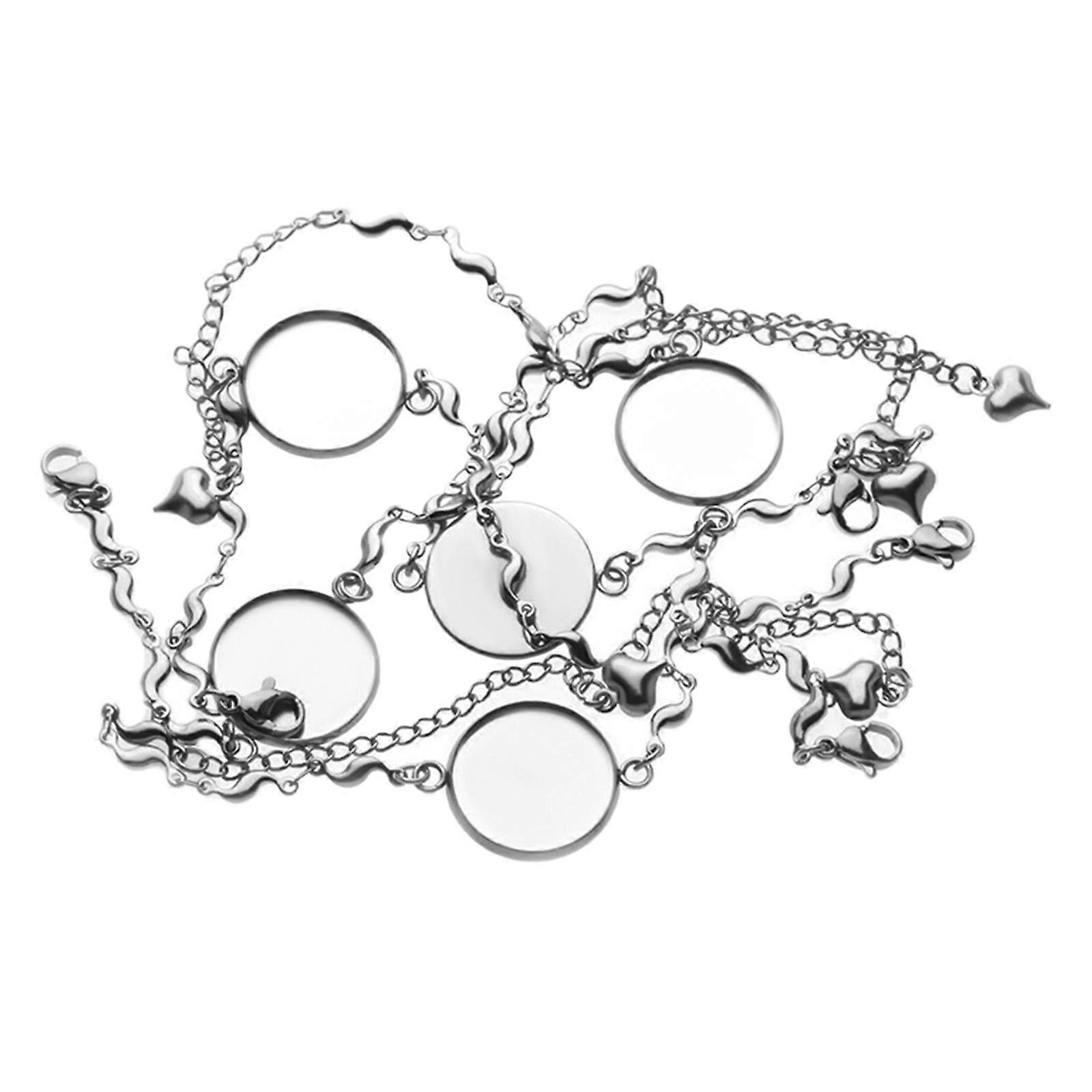 5x Plated Bezel Bracelet Blanks Silver Cabochon Disc Base for Jewelry Making