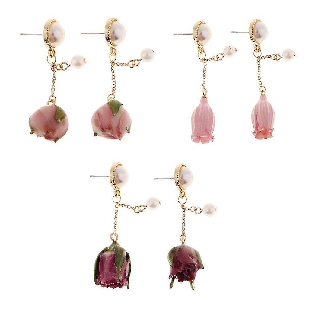5x1 Pair Natural Real Dried Flower 3D Resin Epoxy Covered Earrings Jewelry A