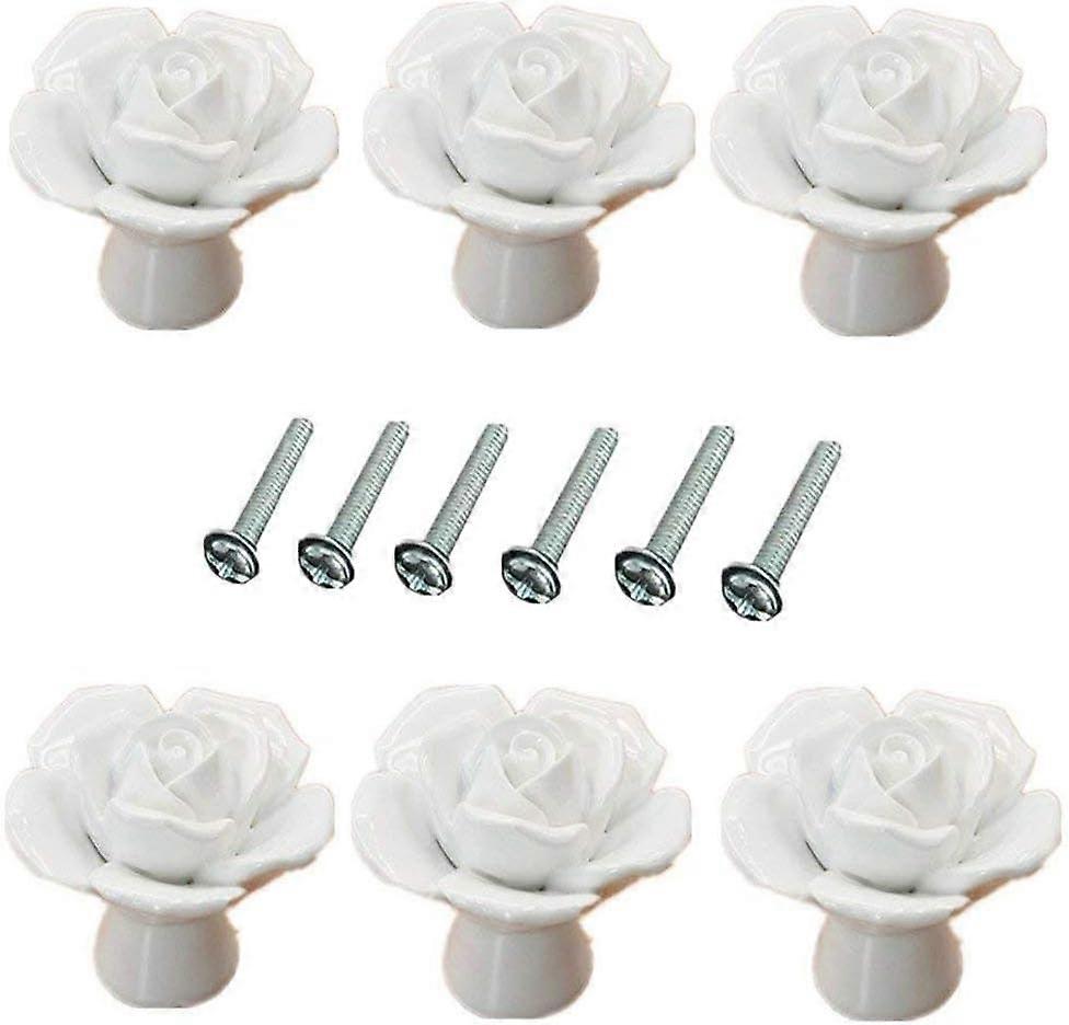 6Pieces Rose Flower Shape 40mm Ceramic Pullhandle, Cupboard Door Handle,Furniture Decoration Handles - White