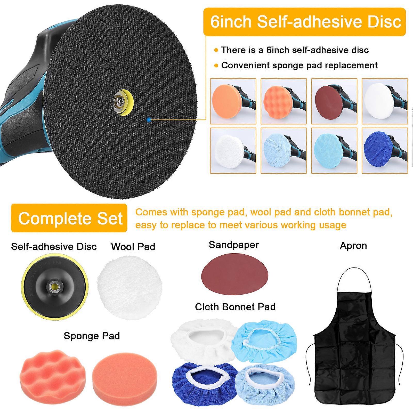 6inch Electric Car Polisher High Efficient Auto Waxing Polishing Machine Multifunctional Rotary Tool with Sponge Wool Bonnet Pads