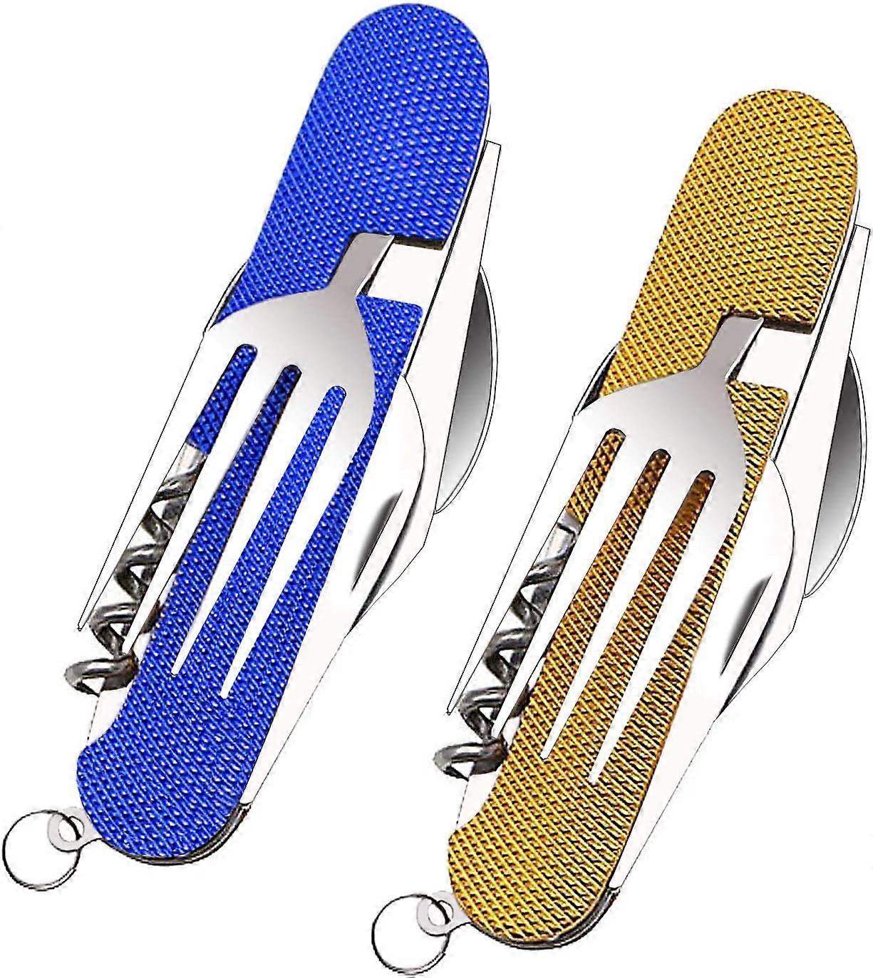 6 in 1 Stainless Steel Folding Cutlery Set(2 Pieces),Folding Cutlery Camping Travel Hiking Picnic,Pocket Camping Cutlery,Folding Tableware for Outdoor
