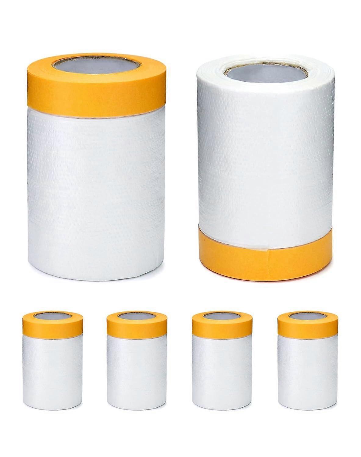 6 rolls painting tape with masking film, plastic dust protection film for decoration, dust and waterproof, 55 cm x 20 m, for car or furniture