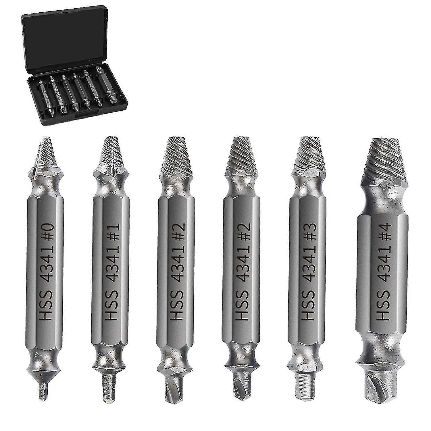 6 Pack Hss 4341 Steel Screw Extractor, Damaged Screw Removal Kit For Broken Bolts, Tungsten Steel, Titanium Plated