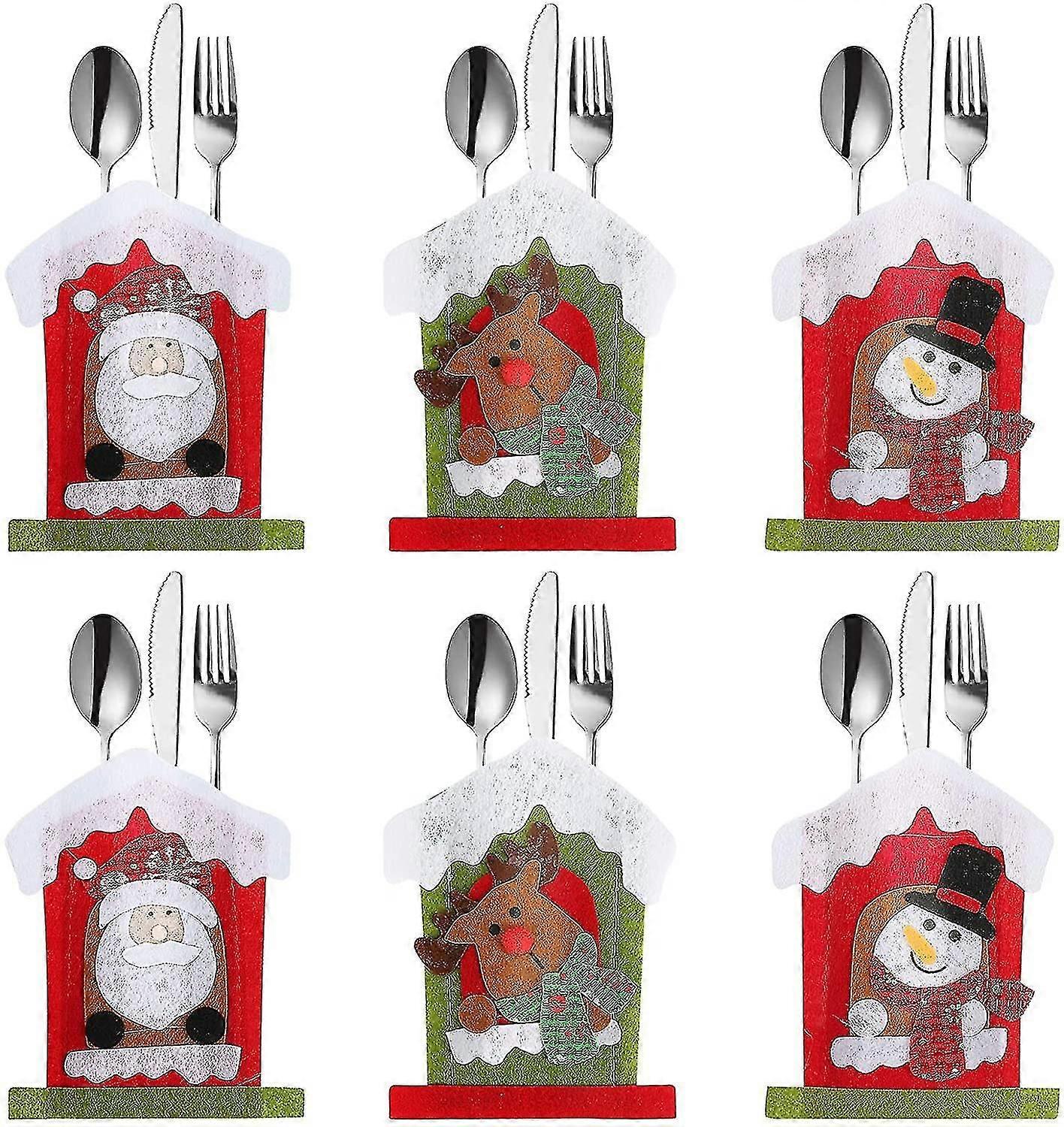 6 Pieces Christmas Cutlery Holders, Silverware Holder Pockets Christmas Cutlery
