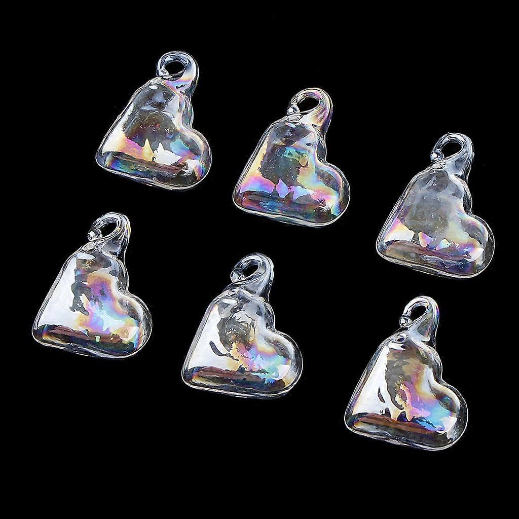 6 Pieces Mini Small Wishing Rainbow Glass Bottle Pendant Heart