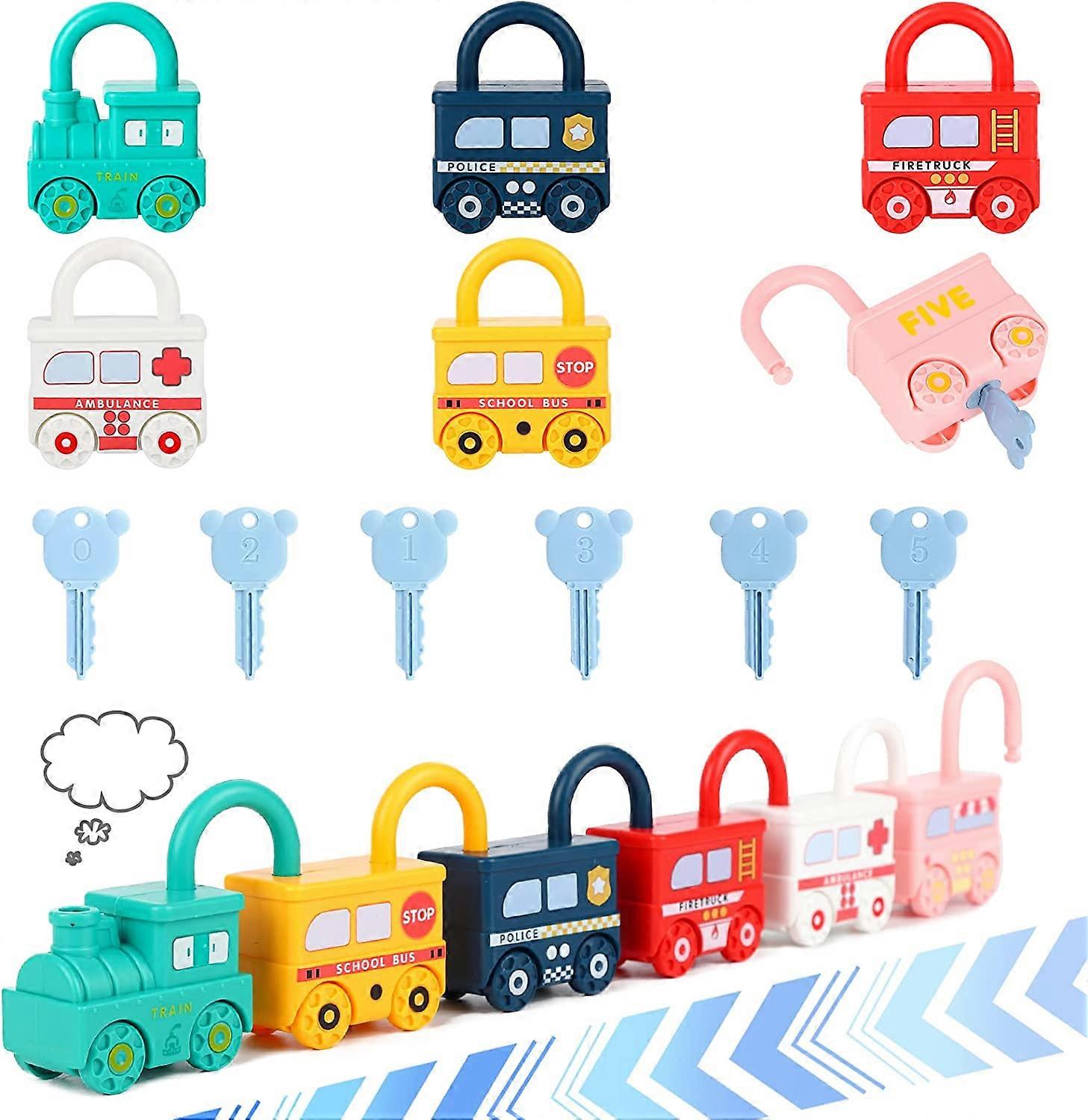 6 Pieces Car Lock & Key Toy, Number Matching and Counting Toys for Kids
