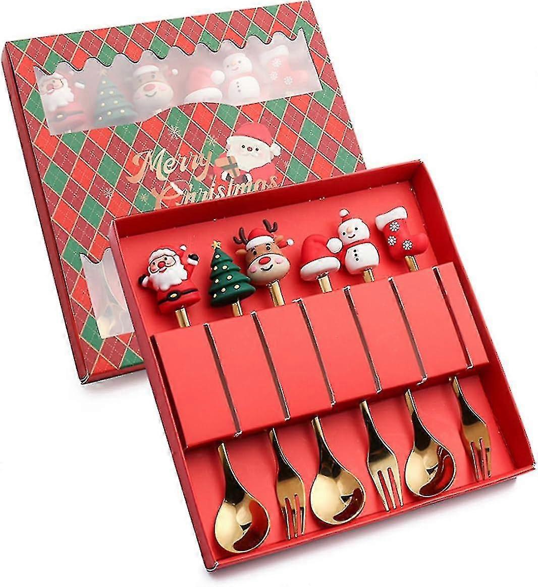 6 Pieces Stainless Steel Christmas Spoon And Fork Set Christmas Tree Flatware Silverware Set Santa Claus Reindeer Spoon/fork Party Cutlery For Coffee