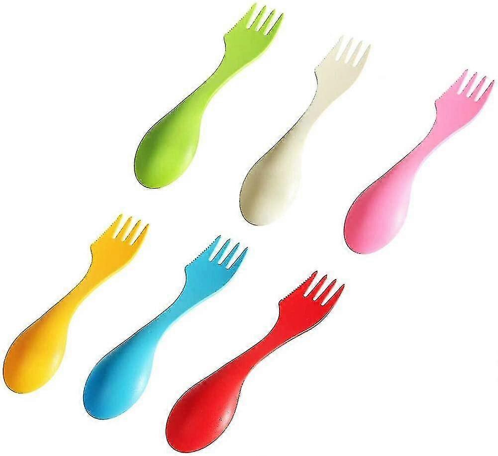 6 Pieces Of Plastic Spork, Light And Strong Three-in-one Plastic Camping Cutlery, Portable Outdoor Spoon For Camping Essentials, Plastic Spoon-forks A