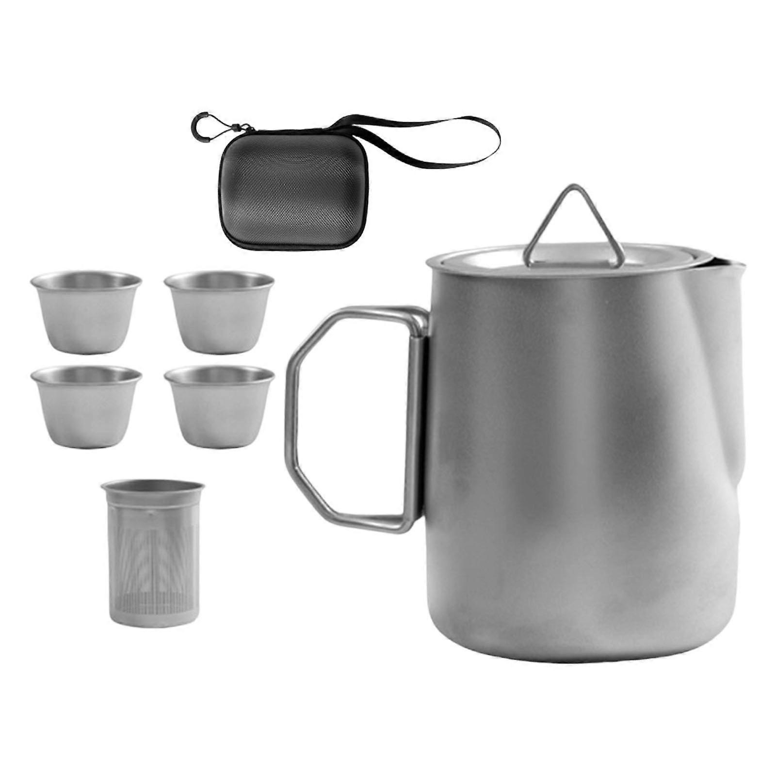 6pcs Outdoor Teas Accessories 304 Stainless Steel Light weight Durability Teas Pot for Picnics Travel Activity Multicolor
