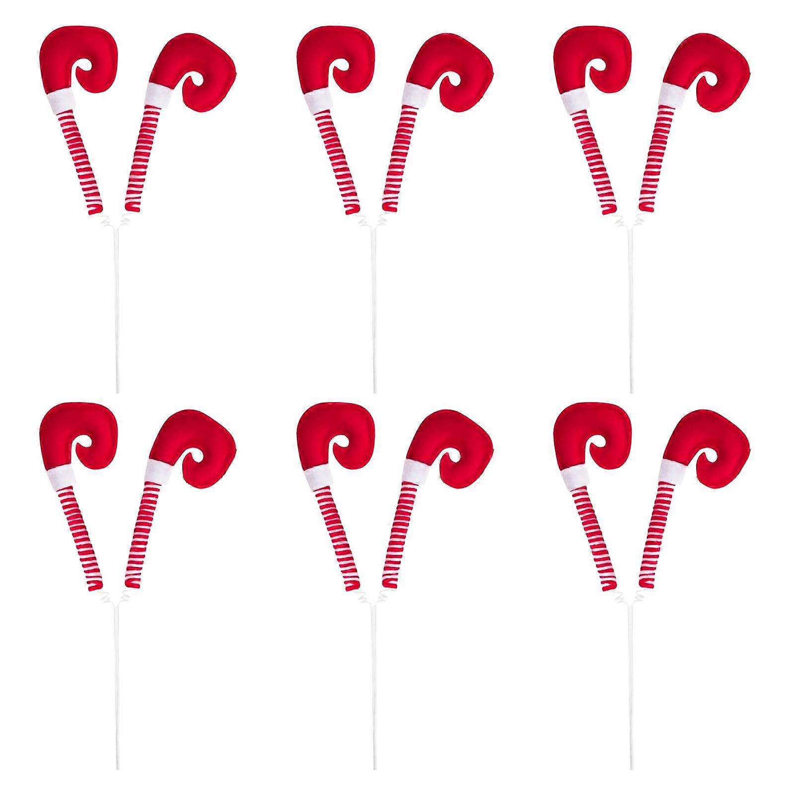 6Pcs Christmas Elf Leg Picks Xmas Tree Ornaments Plush Stuffed Striped Elf Leg Picks Tree Topper Decorations for Holiday Party Decor