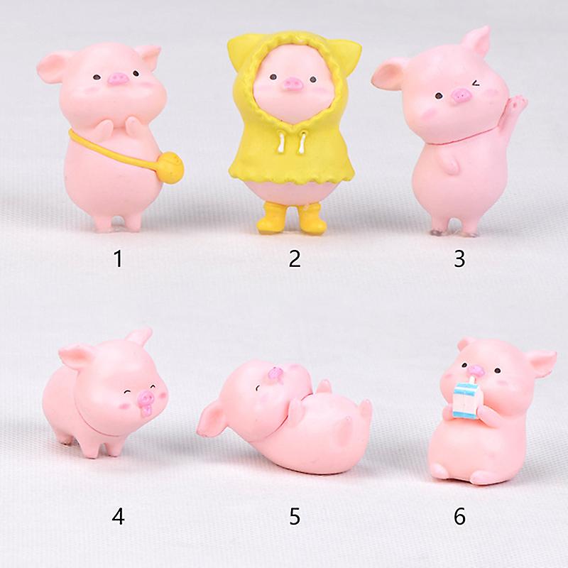 6pcs Cute Pig Models Miniature Landscape Ornaments Garden Bonsai Decorations