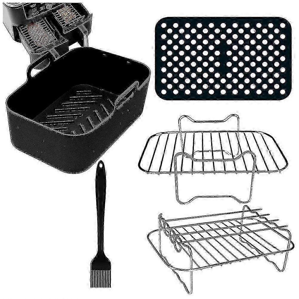 [Design for Dual Zone 7.6L-9.6L]: twin tray Ninja air fryers accessories compatile with Ninja AF300UK 7.6L, AF400UK 9.5L, Instant Vortex 7.6L, Tower T17088, EK4548 8.2L, , EMDAF9LD, , Devology, etc most 7.6L-9.6L dual zone air fryers. [6PCS Dual Basket Accessories]: 1x Silicone Pot, 1x Silicone Liner, 1x Muitl- Rack, 1x Skewer Rack with 4 Skewers, 1x Food Tongs, 1x Silicone Oil Brush. This accessories set helps you the most out of each basket, you can keep it as a thoughtful birthday, holiday gift for and family that adds even more and versatility to their . [Reusable Silicone Liner]: silicone pot is made from 100% food-safe grade silicone. It is withstand temperatures up to 428F and down to -40F. The silicone pot helps to keep the tray from oil and breadcrumbs, save a lot of hassle cleaning the twin tray. pattern design on the bottom allows you to remove residual oil or grease while cleaning. [2PCS Rack]: metal racks are designed for everyday use and , which helps you the most out of each basket, allowing you to fry, and dehydrate at least 4 servings. Both 2 air fryers racks are constructed of food grade sturdy 304 stainless steel while following quality control guidelines and are free of or harmful materials. They can be used at high temperatures and can be used for a long time. [Making a Healthy Eating]: Equipping your with this accessories can not only time, also filter out excess fat. Compared with ordinary frying, it can reduce your fat by 80% and make your diet healthy and less oily without losing the . Colour:Photo Color Material:Stainless steel Package Contents: 1x Silicone Pot 1x Silicone Liner 1x Muitl- Rack 1x Skewer Rack with 4Skewers 1x Silicone Oil Brush Only the above package content, other products are not included. Note: Light reflection and different displays may cause the color of the item in the picture a little different from the real thing. The measurement allowed error is +/- 1-3cm.