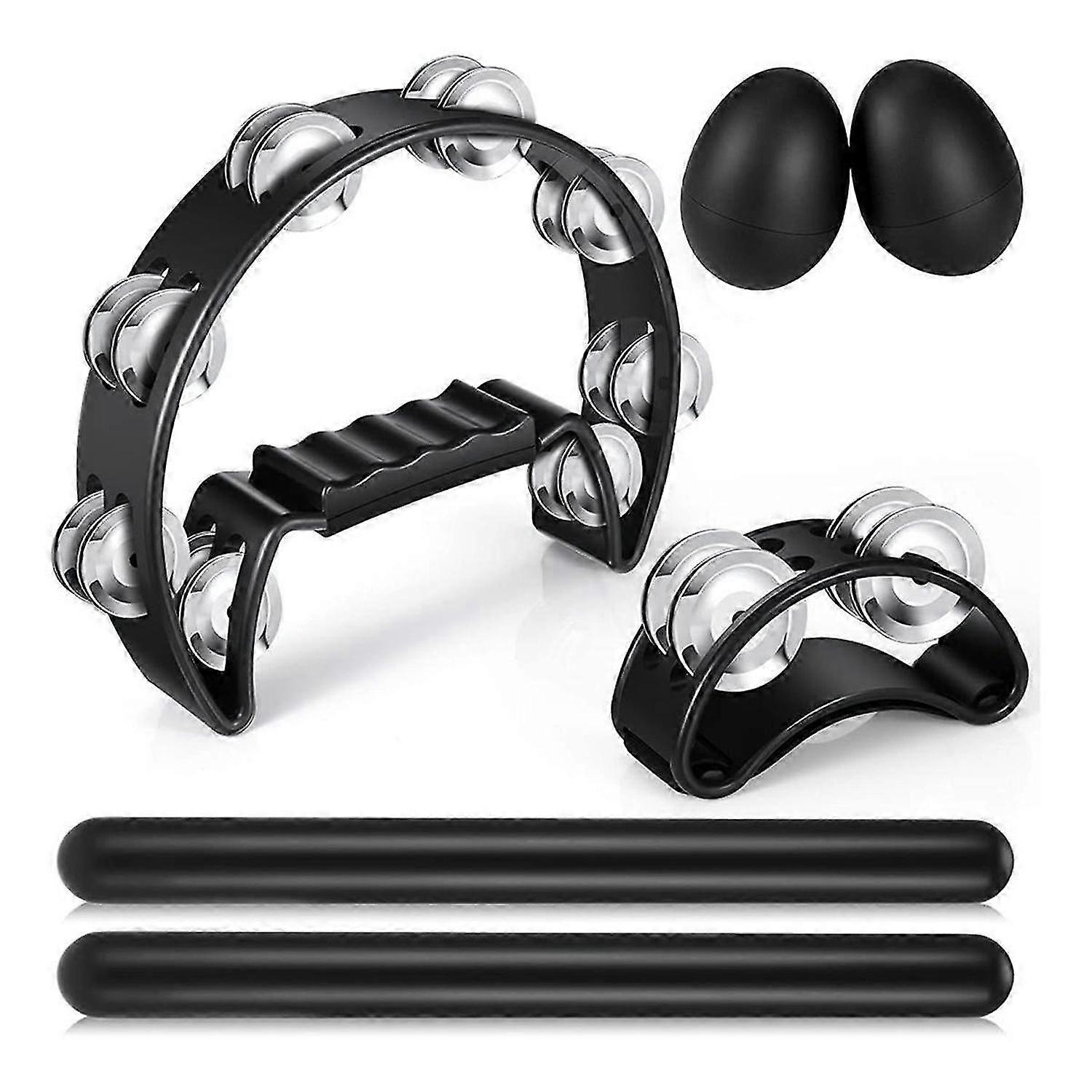 6 Pcs Tambourines, Hand Held Half Moon Tambourine with Rhythm Sticks Egg Shakers Musical Percussion Instrument Set
