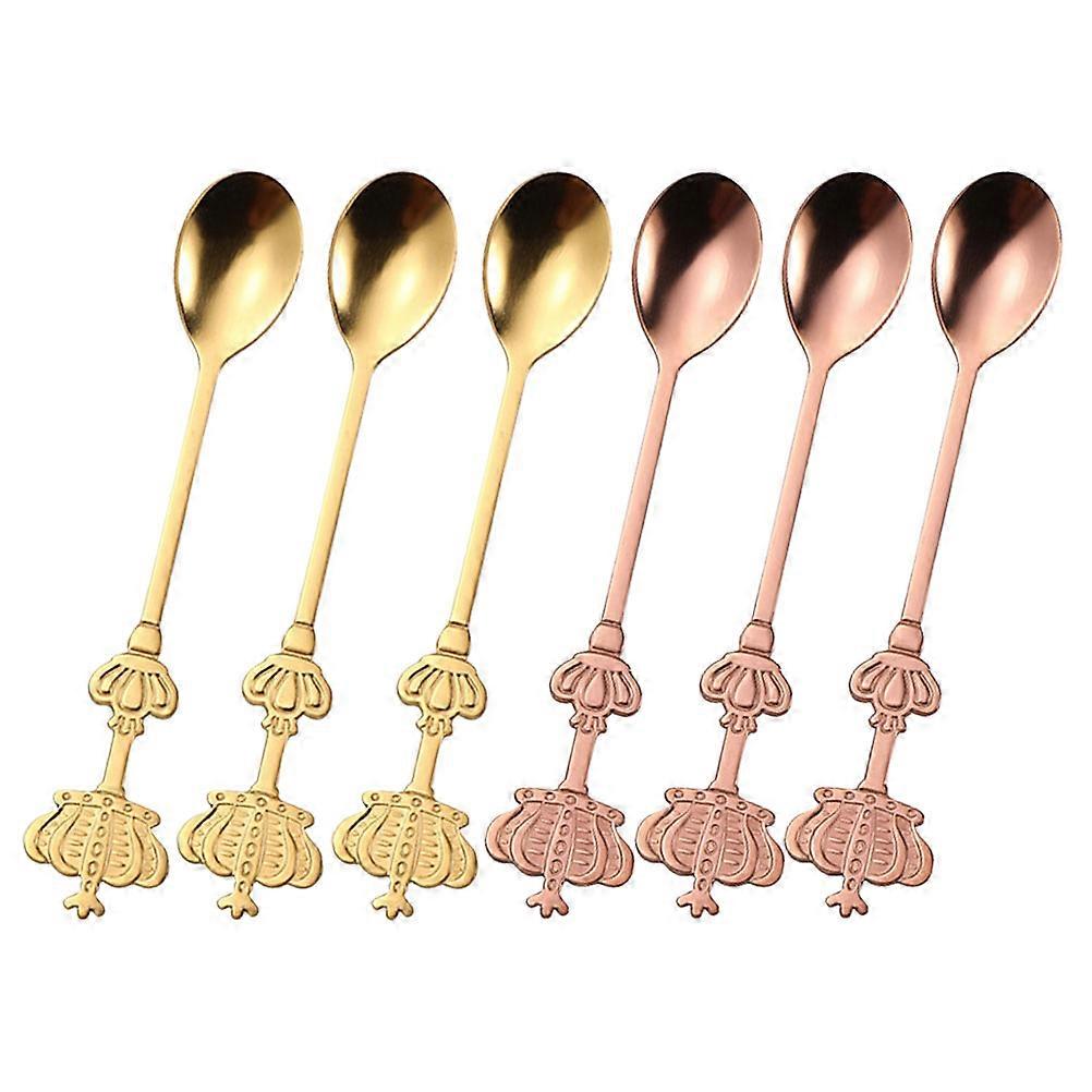 6pcs Stainless Steel Spoons, Elegant Court Style Soup & Mixing Spoons for Desserts, Beverages & Appetizers – Gold & Rose Gold Finish, Ergonomic Design