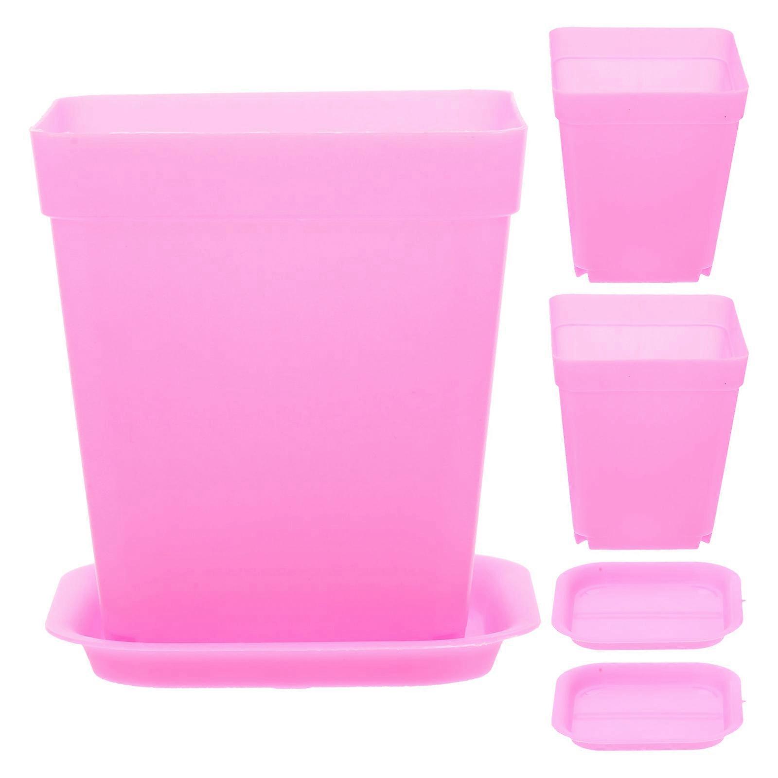 6pcs Thicken Flower Pots Square Planters Pot Trays Plastic Pots Creative Small Square Pots for Succulent Plants(each 3 of Small Pink Square Basin,Pink