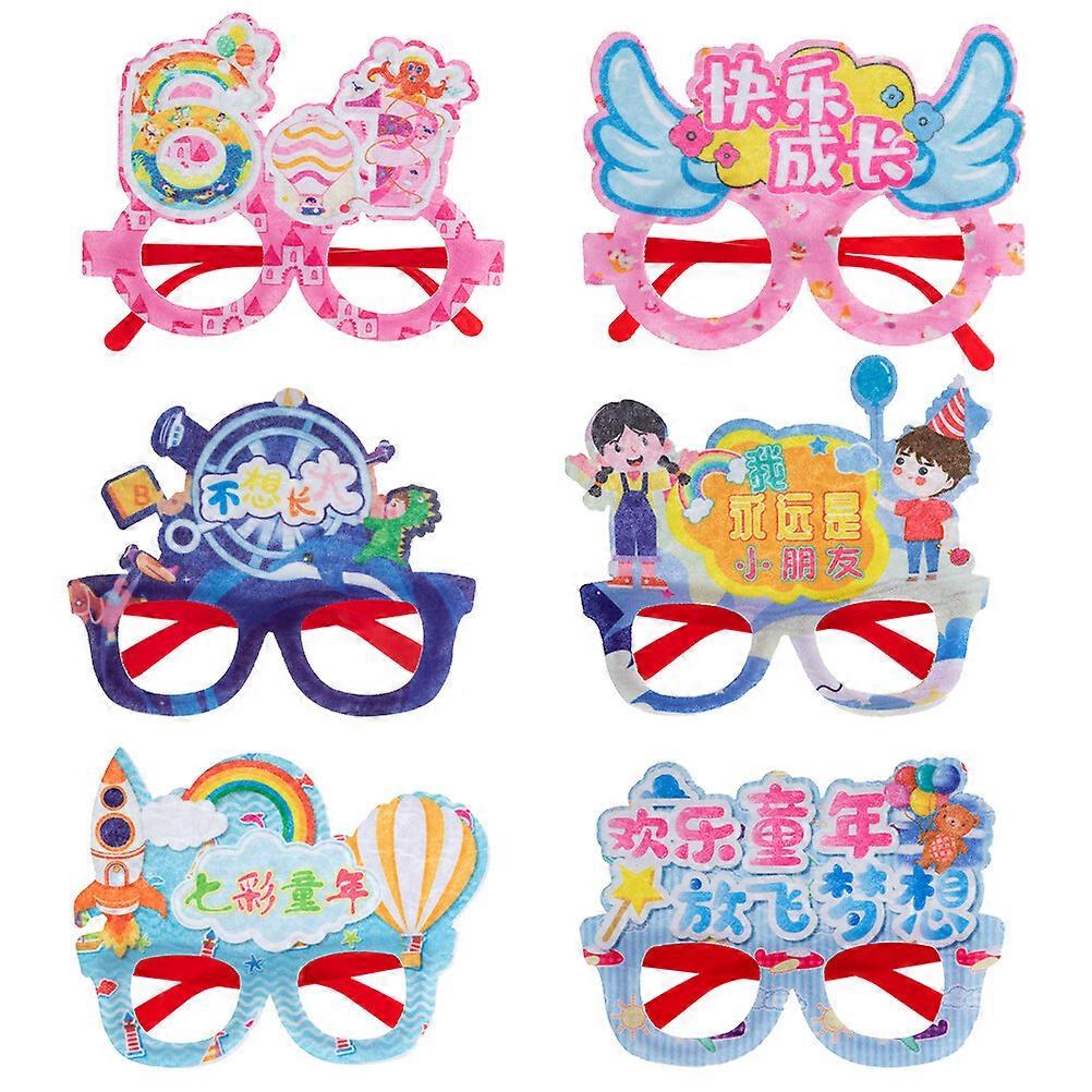 6 pcs Party Glasses Frame Kids Pretend Glasses No Lens Children's Day Cute Glasses Frame