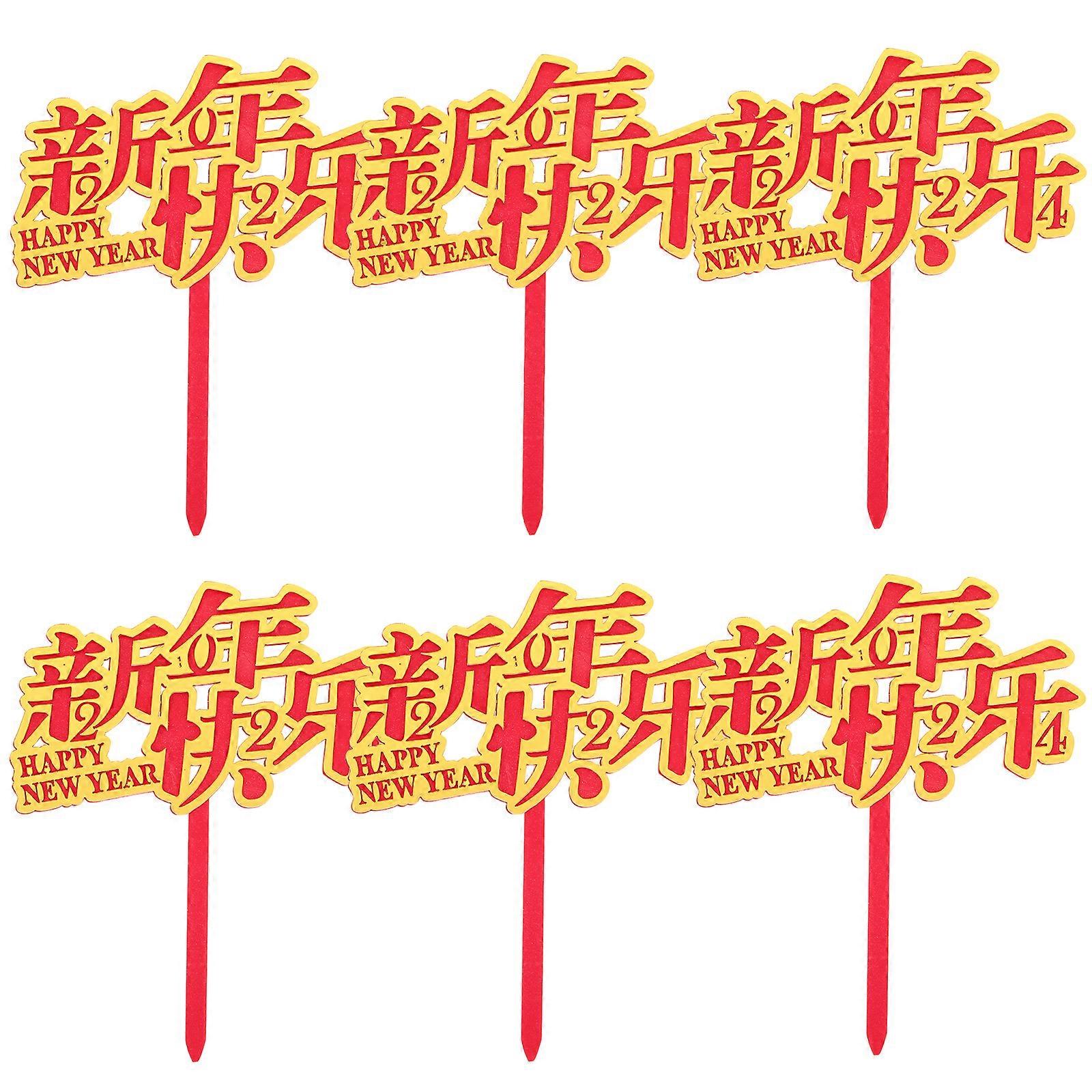 6pcs New Year Party Cake Decors Chinese Style Cupcake Inserts Picks New Year Cake Toppers