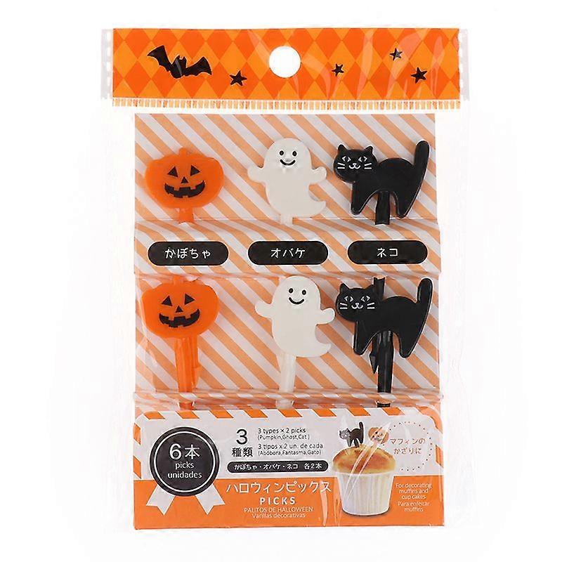 6Pcs/Set Mini Kids Halloween Fruit Fork Cartoon Snack Cake Dessert Food Toothpick