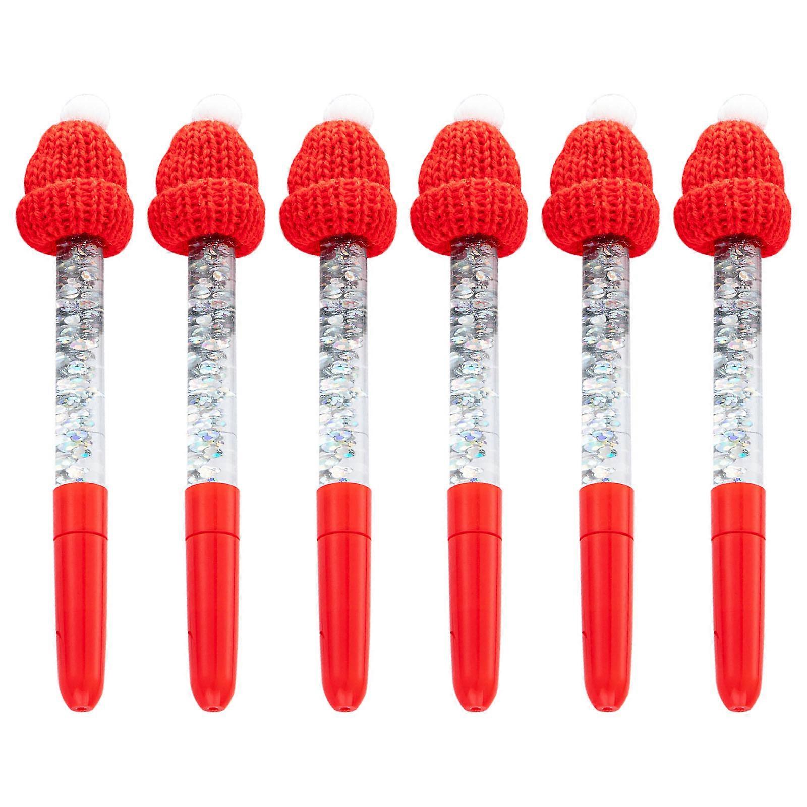 6Pcs Holiday Ballpoint Pens Refillable Ecological Friendly Ink Plastic Barrels For Students Teachers Professional Red