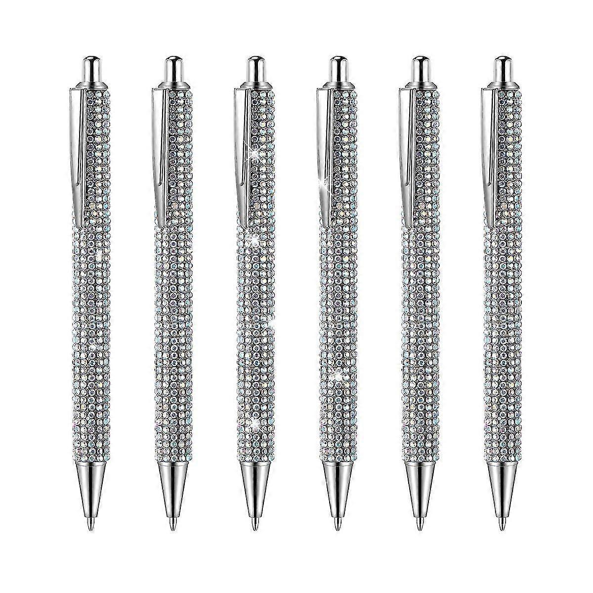6 Pcs Cute Pen Bling Diamond Christmas Rhinestones Gift Silver Metal Ballpoint Fancy Sparkly Crysta