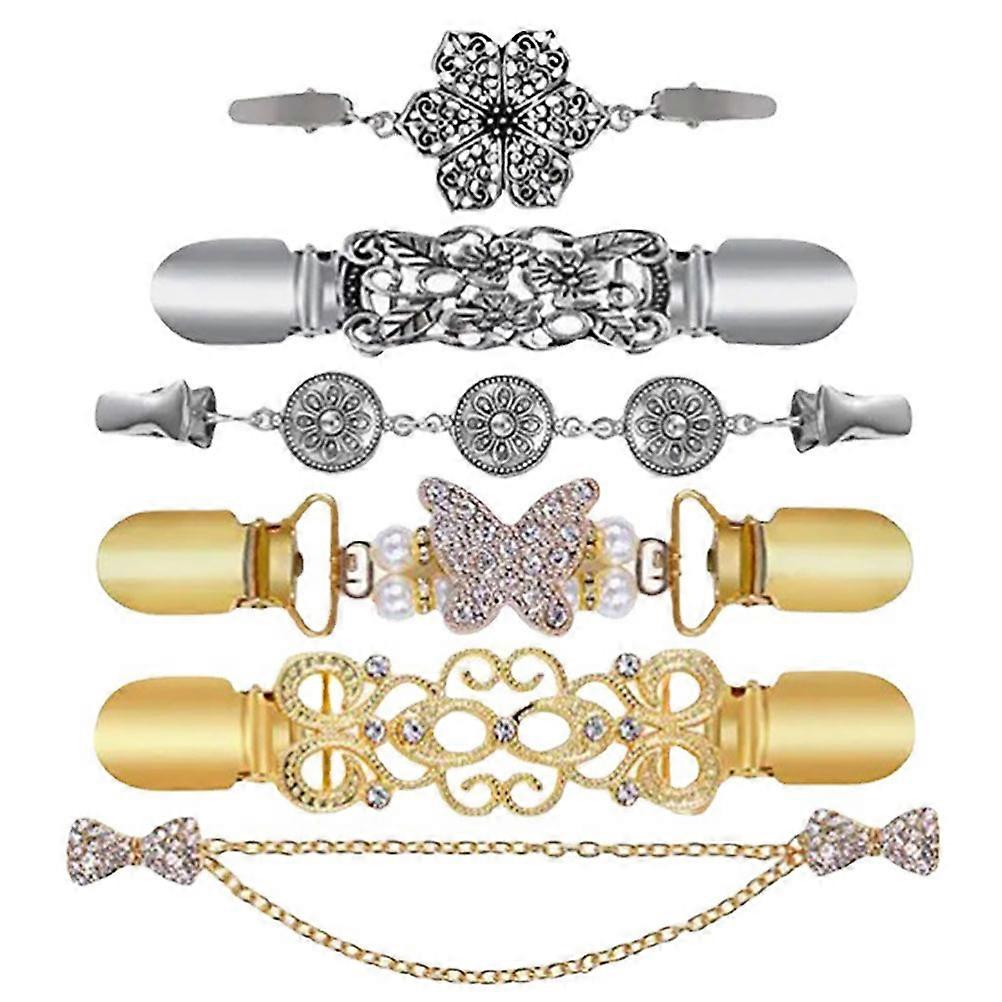 6pcs Vintage Cardigan Clips for Sweaters & Shawls – Retro Collar Clasps, Durable Brooch Clips for Dresses & Scarves, Stylish Fashion Accessories