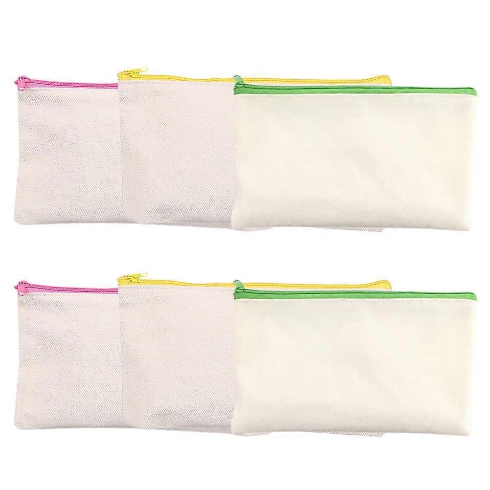 6pcs DIY Canvas Pencil Case with Zipper, Lightweight Portable Pen Storage Bag for Students, Holds Pens, Pencils, Rulers and Stationery Supplies
