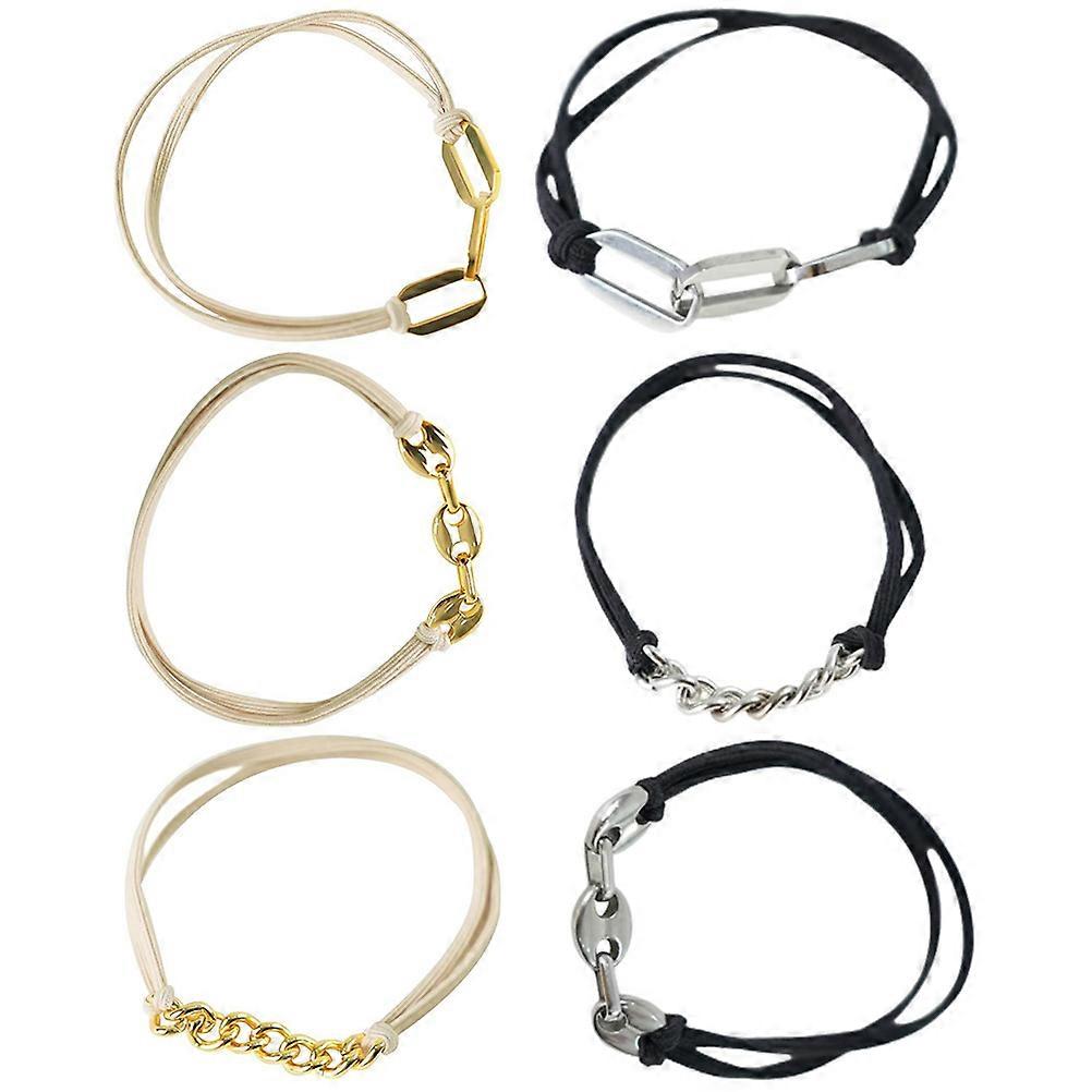 6pcs Elastic Hair Ties Fashionable Wrist Bracelets Decor Accessories in Assorted Colors