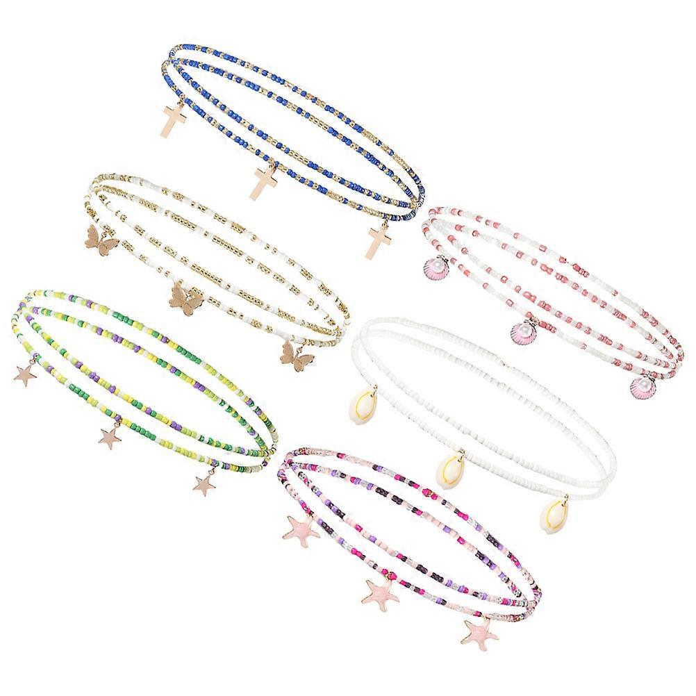 6pcs Bead Waist Chain Fashionable Alloy Rice Beads Body Chain for WomenSexy Beach Vacation