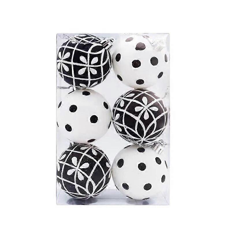 6pcs Christmas Balls Tree Pendants Hand-painted 6cm Black and White Hanging Ball Decoration for Xmas Home Decor Party Holiday