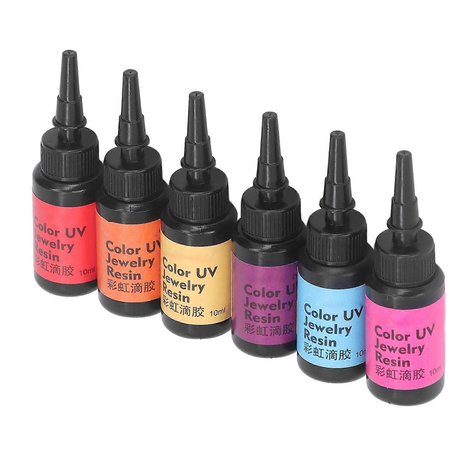 6Pcs 10ml UV Resin Easy Operation Quick Curing Bright Vivid Color Widely Used UV Epoxy Resin for DIY Jewelry Set C (Deep Pink, Pale Yellow, Orange, R