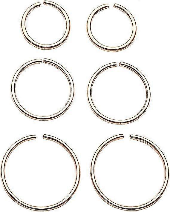 6pcs 20g Stainless Steel Nose Ring Hoop Septum Lip Tragus Earring Cartilage Helix Piercing 6mm-10mm(rose Gold)