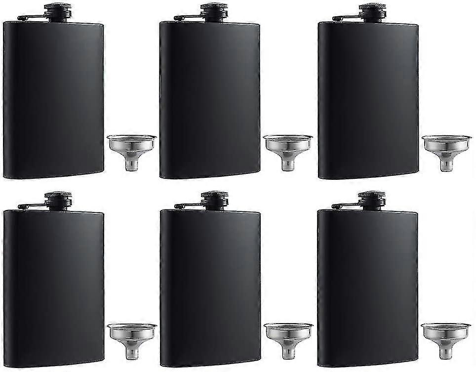 6 Pcs Hip Flask For Liquor Matte Black 8 Oz Stainless Steel Leakproof With Funnel, Great Gift Idea Flask