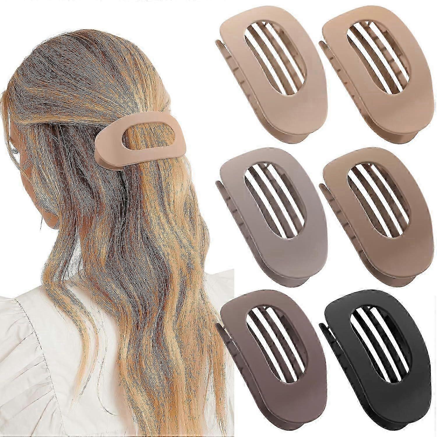 6 PCS Flat Hair Clips for Women, French Flat Round Clips for Thick or Thin Hair, Matte Large Hair Claw Clips Strong Hold No Slip Hair Barrettes Neural
