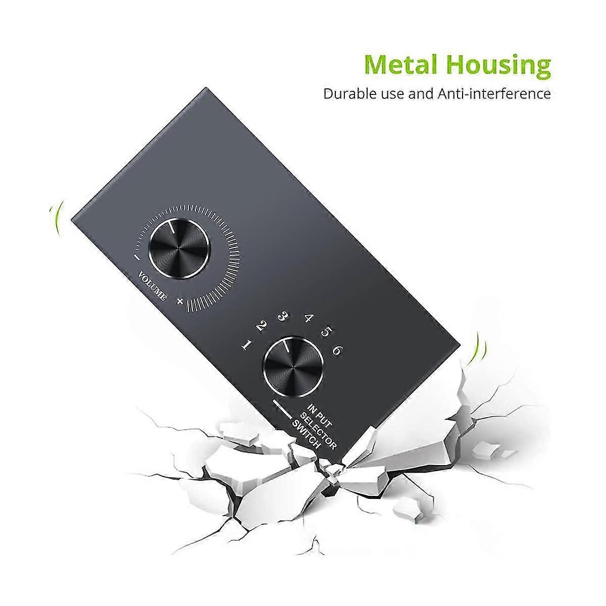 6 Ports 3.5mm Audio Switch Bidirectional 3.5mm Audio Switcher Support 1 in 6 Out or 6 in 1 Out,for PC Phone Headphone