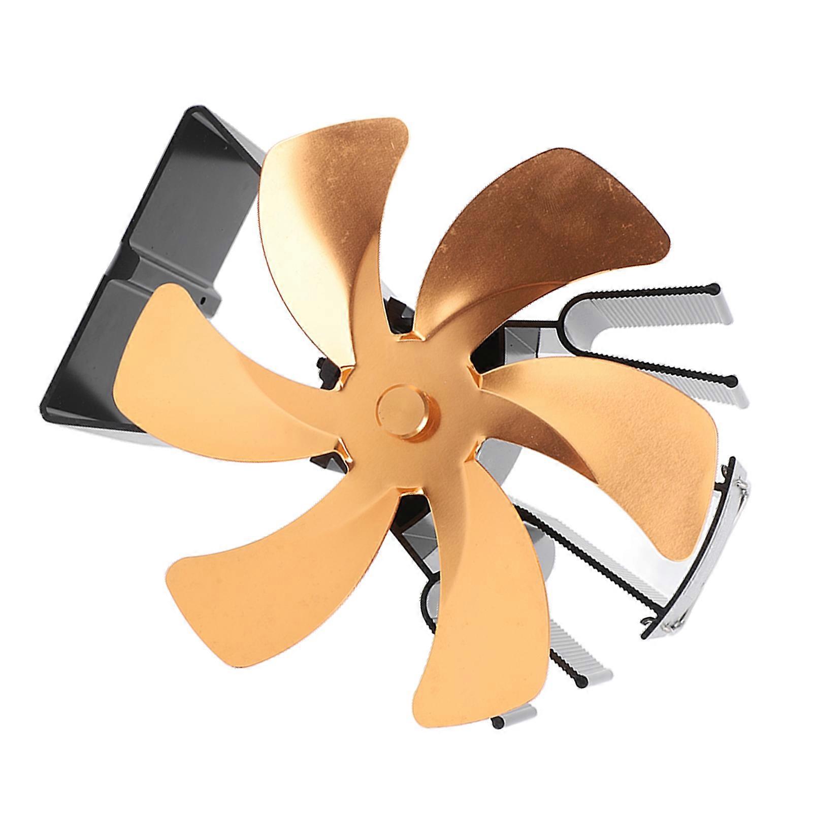 6 Blade Heat Powered Stove Fan Aluminum Alloy Manual Control Desktop Fireplace Fan for Wood Burning Stoves Pellet Log Burners Gold