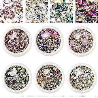 6 Boxes Mixed Nail Art Rhinestones Diamonds Crystals Beads Gems For 3d Nails Art Decoration Nail Art Supplies