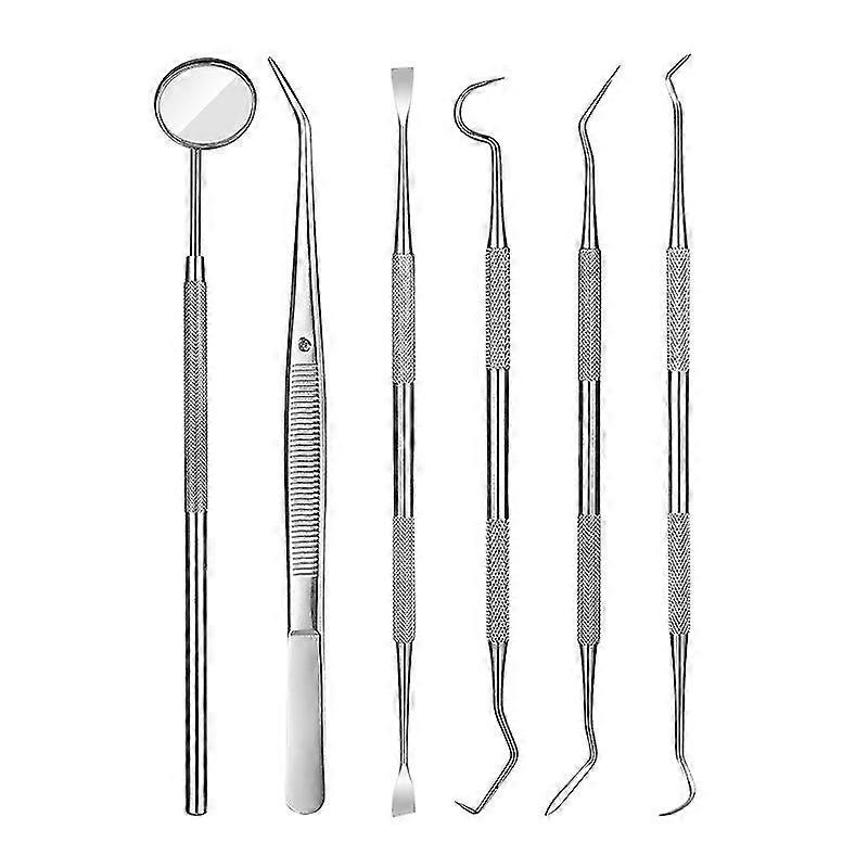 6-pack Of Stainless Steel Dental Cleaning Care Tools Oral Set Teeth To Remove Tooth Stains Dental Calculus Tartar Oral Mirror