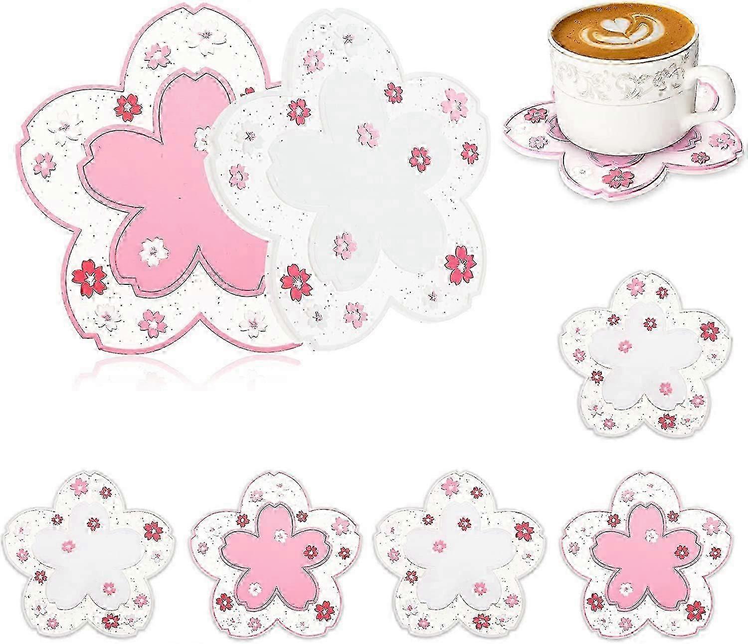 Cute Silicone Drink Coasters Set of 6 - Non-Slip Washable Pink & White Sakura Design