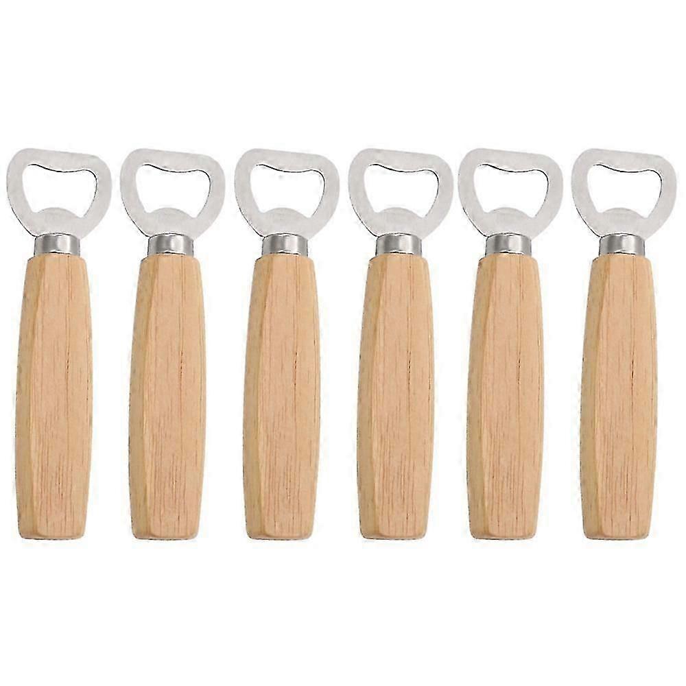 6pcs Wood Handheld Heavy Duty Stainless Steel Bottle Opener,Bartender Bottle Opener,Cider Beer Bottle