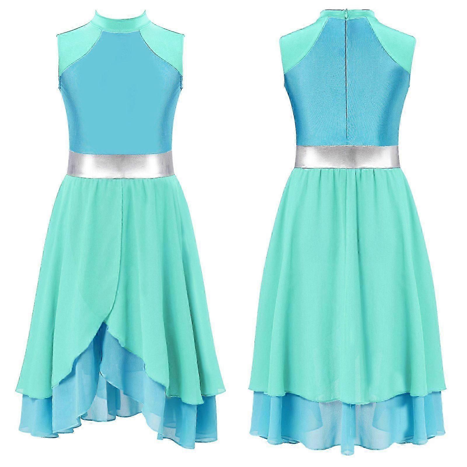 6-16y Girls Church Praise Choir Costume Ballroom Lyrical Dance Dress Sleeveless Color Block Tiered Stage Performance Dancewear