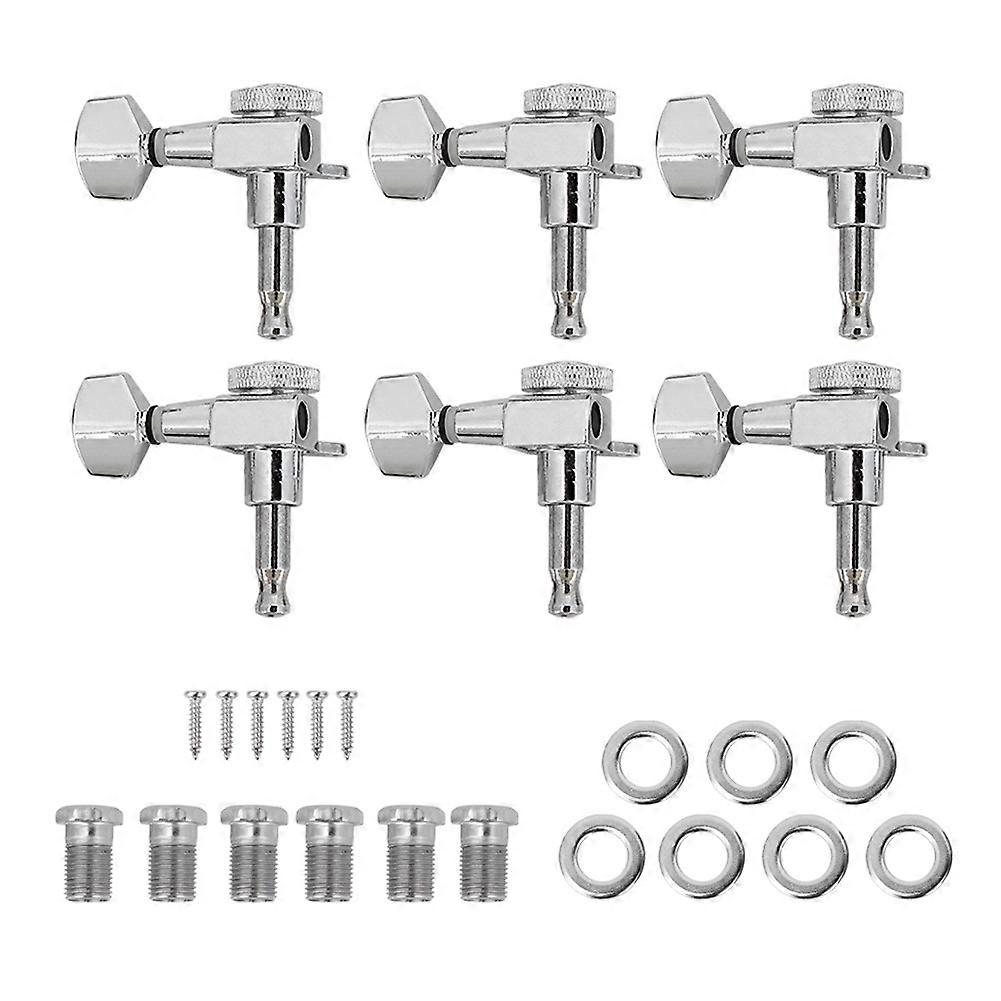 6 PCS 6R String Tuning Pegs Tunner Machine Head for Acoustic Electric Guitar Accessory (Silver)