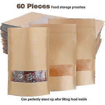 60 Pack Kraft Paper Food Bags Reusable Food Storage Bags Zipper Brown Paper Food Packaging Bags