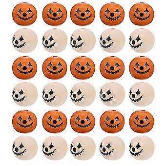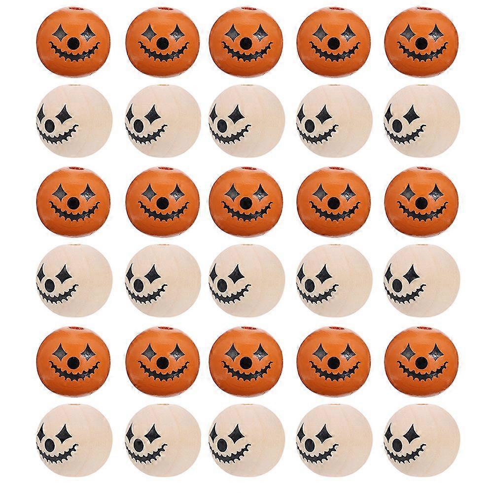60Pcs Wood Loose Beads Halloween Pattern Beads Festival Tassel Pendant DIY Beads
